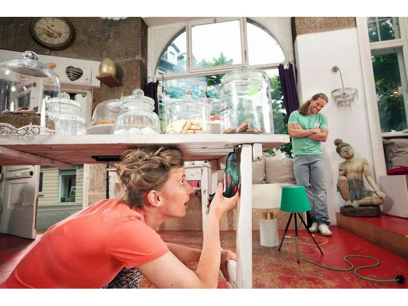 Da Sie nicht an ein störendes Kabel gebunden sind, haben Sie die Möglichkeit den Akkuschrauber auch an unzugänglichen Stellen zu verwenden.