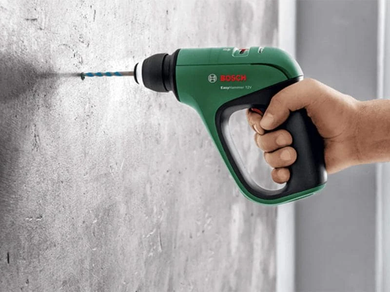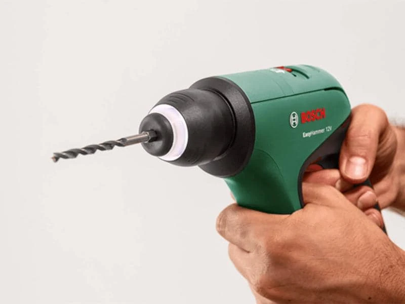 Der vielseitig einsetzbare kabellose Bosch EasyHammer 12V ermöglicht Bohren, Schlagbohren und Schrauben mit nur einem einzigen Werkzeug. Seine Superkraft steckt im pneumatischen Hammerwerk das für kraftvolles Bohren in Beton und Mauerwerk sowie Schrauben und Bohren in Holz und Metall sorgt. Dank 3-in-1-Arbeitsmodusschalter kann schnell und einfach zwischen den Arbeitseinstellungen umgeschaltet werden, während das Bohrfutter Zubehörwechsel innerhalb von 3 Sekunden ermöglicht. Das Gerät ist mit einem eingebauten aufladbaren Li-Ion-Akku ausgestattet, der einfach über USB-C mit Power-Delivery-Standard aufgeladen werden kann, und verfügt über ein LED-Licht für eine vollständige 360°-Ausleuchtung des Arbeitsbereichs.