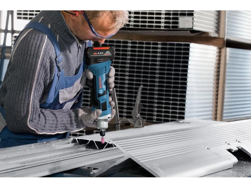 Der GGS 18V-LI von Bosch Professional ist ein professioneller Akku-Geradschleifer zum Betrieb mit 18-Volt-Systemakkus. Sein extrem robuster und belastbarer 4-Pol-Hochleistungsmotor besticht durch seine lange Lebensdauer und das geringe Gewicht von nur 1,8 kg garantiert ein komfortables und ermüdungsarmes Arbeiten. Dank der kompaktesten Bauform sind auch Tätigkeiten an engen Stellen problemlos möglich. Die Spannzange der Werkzeugaufnahme eignet sich für Schleifköpfe mit einem Schaftdurchmesser von bis zu 8 mm.