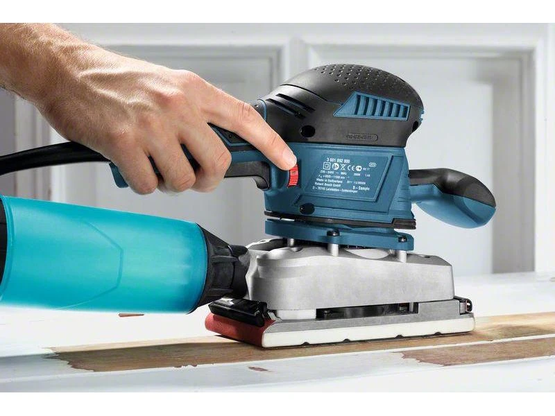 Dank der gleichmässigen Verteilung des Anpressdrucks sorgt der GSS 230 AVE Professionel für eine hohe Oberflächengüte. Aufgrund des neuartigen Papiersystems wird Ihnen ein perfekter Schleifpapiersitz garantiert – selbst bei Papier ohne Klettverbindung. Der Schwingschleifer verfügt über eine Drehzahlvorwahl und einen Leistungsstarken 300-Watt-Motor.