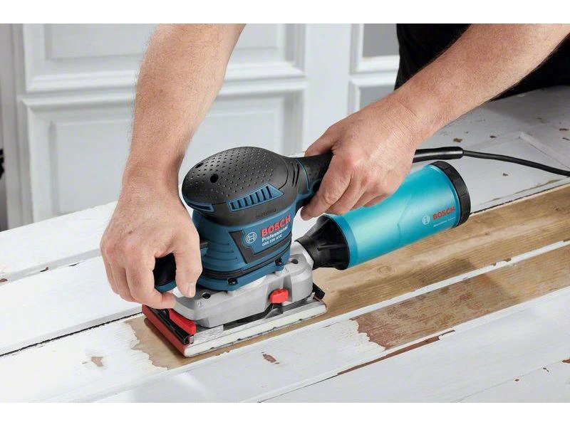Der GSS 230 AVE Professional ist der ideale Schwingschleifer für die Arbeit oder für zu Hause. Aufgrund von seinem entkoppelten Motorgehäuse hat er eine sehr geringe Vibration. Durch den Softgrip auf den ergonomisch gestalteten Flächen wird Ihnen die Handhabung sehr leicht fallen.