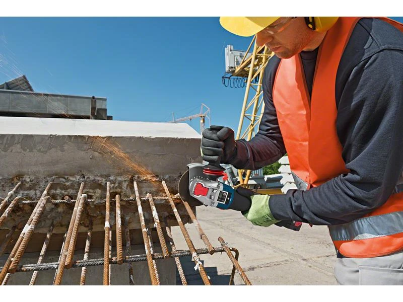 Der kleine Akku-Winkelschleifer GWX 18 V-10 SC Professional mit X-LOCK bietet verbesserte Leistungsfähigkeit und Werkzeugführung in der 18 V-Kategorie. Er bietet dank des leistungsstarken bürstenlosen Motors und der ProCORE18 V-Akkutechnologie über den Akku dieselbe Leistung wie ein kabelgebundener Schleifer mit 1.000 Watt. Dieser kleine Winkelschleifer wird mit einem schlüssellosen X-LOCK Klick-System ausgeliefert, das einen schnellen und bequemen Zubehörwechsel ermöglicht. Sein Bluetooth Connectivity-Modul ermöglicht Anpassungen direkt über die Toolbox App, und ein User Interface mit Drehzahlvorwahl sorgt mit Aktivwerkzeug-Feedback für grösstmöglichen Komfort. Das Werkzeug eignet sich zum Schneiden und Abschleifen von Metall, Stein und Beton. Es ist kompatibel mit den Staubabsaugvorrichtungen GDE 125 EA-T Professional und GDE 115 / 125 FC-T Professional sowie mit allen Bosch Professional 18 V-Akkus und -Ladegeräten (Professional 18 V System).