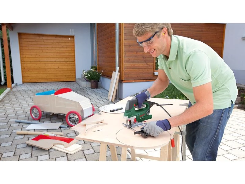 Die Bosch Stichsäge PST 1000 PEL liefert genaue Ergebnisse bei verschiedensten anspruchsvollen Anwendungen. Mit dem Hubzahlvorwahl wird die am besten geeignete Hubzahl für das jeweilige Material ausgewählt. Die Aluminiumfussplatte kann für kontrollierte gewinkelte Schnitte werkzeuglos eingestellt werden. Mit Hilfe eines Parallelanschlags werden gerade Schnitte leicht ausgeführt. Diese Stichsäge ist die vielseitige Wahl zum Sägen in Holz und Stahl bis zu 100 mm. Das SDS-System ermöglicht einen schnellen und einfachen Sägeblattwechsel mit einer Hand.