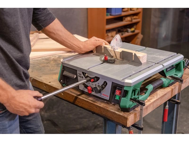 Die Bosch Tischsäge AdvancedTableCut 52 ermöglicht vielseitige Schnitte in Holz. Die 8.5 kg leichte Maschine lässt sich einfach transportieren und benötigt wenig Platz bei der Aufbewahrung. Das NanoBlade lässt sich für schnelle und kurze Schnitte einfach durch das Werkstück ziehen oder für lange Schnitte durch das Werkstück schieben. Diese Tischsäge eignet sich für vertikale Gehrungsschnitte bis 45° und horizontale Gehrungsschnitte von +/- 60°. Ihr NanoBlade-Sägeblatt ist wartungsfrei und muss nicht geölt, geschärft oder gespannt werden. Die SDS-Kompatibilität des Sägeblatts ermöglicht einen schnellen und einfachen Sägeblattwechsel. Eine integrierte Schublade hält Sägeblätter und weiteres Zubehör immer griffbereit.