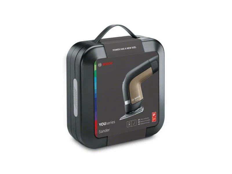 Der YOUseries Sander ist ein schlanker, stilvoller und leistungsstarker Deltaschleifer für ein modernes Zuhause. Das Akkugerät überzeugt mit seiner kompakten, ergonomischen Form und seiner Deltaschleifplatte. Diese erlaubt die mühelose Bearbeitung von Ecken, Kanten und schwer zugänglichen Bereichen. Betrieben wird das Gerät mit einem austauschbaren YOUseries Lithium-Ionen-Akku, der sich komfortabel über USB-C aufladen lässt. Ein Klettverschlusssystem ermöglicht einen schnellen und einfachen Schleifpapierwechsel.