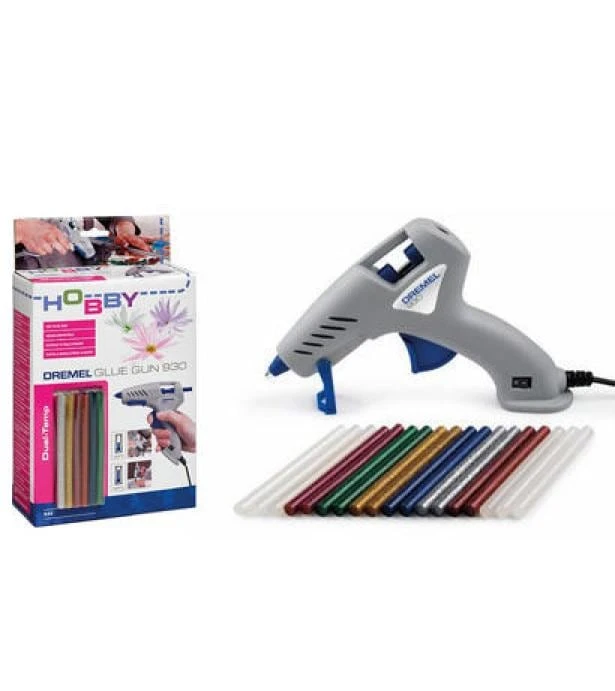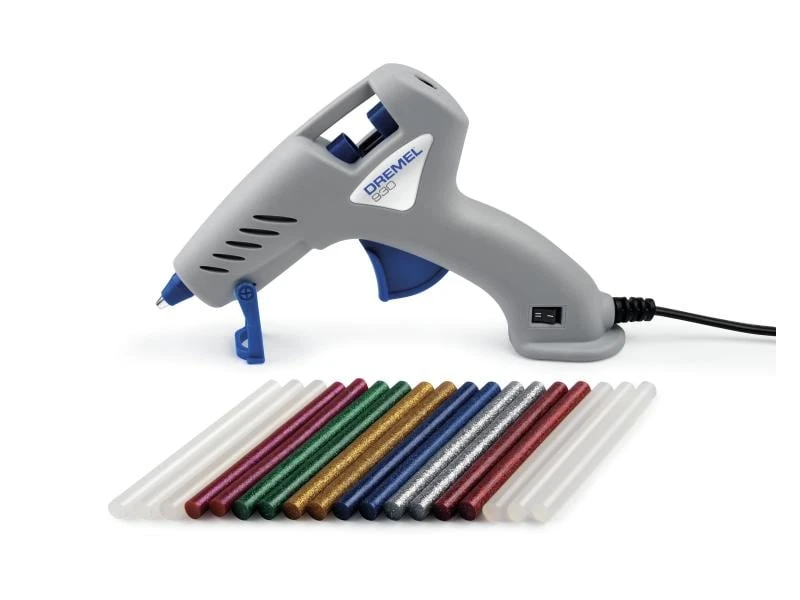 Der Dremel 930 ist eine Klebepistole mit zwei Temperaturstufen speziell für Detailklebearbeiten. Die niedrige Temperatur ist optimal für kreative Hobbyanwendungen wie die Gestaltung von Fotoalben, Dekorieren, Farbklebearbeiten auf Glas usw. Mit den beigefügten 7 mm Glitter-Klebestiften können Sie Ihre Objekte zum Glänzen bringen und wunderschöne Dekorationen schaffen. Für einfache Heimwerkerarbeiten im Haus wie das Kleben von Keramik, Holz, Kunststoff und Glas verwenden Sie die hohe Temperatureinstellung. Die Präzisionsspitze mit Tropfschutz vermeidet Klebstoffreste an Ihrem Projekt.