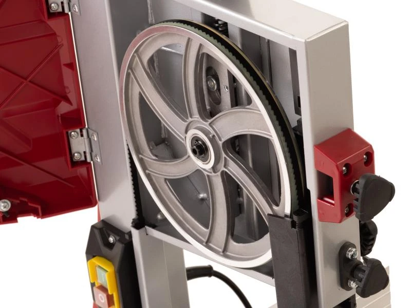 Der Sägetisch der Bandsäge kann stufenlos geneigt werden – so ist auch der schwierigste Gehrungsschnitt ein Kinderspiel. Durch den individuell einstellbaren Sägeblattstabilisator kann die Schwingung des Sägeblattes auf ein Minimum reduziert werden. Einen Anschluss für die Absaugung des anfallenden Staubes gibt es ebenfalls – die Gesundheit dankt es.