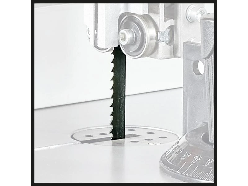 Die Einhell Bandsäge TC-SB 245 L ist eine ideale Basismaschine für ambitionierte Hobbyheimwerker. Stationär und doch flexibel, besticht die Bandsäge durch ihre Anpassungsfähigkeit zu den gestellten Anforderungen. Gerade Schnitte oder Kurven, auf Gehrung oder quer der Faser: Eine Bandsäge bietet ein breites Spektrum. Je nach eingelegtem Blatt lassen sich unterschiedliche Materialien durch den kraftvollen 400 Watt-Motor und eine Leerlaufdrehzahl von 1.450 Umdrehungen pro Minute mühelos schneiden. Eine Bandsäge bietet zudem den Vorteil einer schmalen Schnittfuge, schont damit das Material und spart Energie. Dazu bietet die Bandsäge bei fachgerechter Bedienung effektive Sicherheit. Die werkzeuglose Höhenverstellung dient nicht nur präzisen Schnitten, sondern auch dem Sägebandschutz. Angepasst an die ideale Arbeitshöhe des Anwenders, dient die Höhenverstellung auch einem sicheren und bequemen Gebrauch. Der Sägetisch ist von 0° Grad bis 45° Grad stufenlos verstellbar, der Bandlauf kann über die obere Rolle justiert werden. Der doppelt fixierte Parallelanschlag ist mit einer Schnelljustierung für gerade Schnitte ausgerüstet. Die maximale Schnitthöhe beträgt bei 45° Grad 60 mm und bei 90° Grad 101 mm. Der Winkelanschlag ist von -60° Grad bis +60° Grad stufenlos verstellbar. Die mehrfach verstellbaren Kugellagerführungen reduzieren die Sägeblattschwingung und unterstützen damit einen zuverlässigen Gebrauch und ein feineres Schnittbild. Der in der Lieferung enthaltende Schiebestock ist unabdingbar für die sichere Arbeit an der Bandsäge. Der Nullspannungsschalter schützt bei plötzlichen Stromunterbrechungen im Einsatz. Die Bandsäge ist mit einem 36 mm-Anschluss für einen Absauger ausgerüstet, zudem ist ein Licht zur Ausleuchtung des Arbeitstisches integriert.