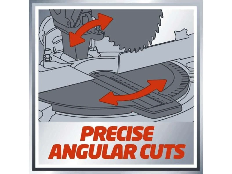 Der praktische Drehtisch gewährleistet Ihnen nicht nur eine sichere Befestigung, sondern bietet Ihnen zudem diverse Einstellungsmöglichkeiten. So lässt sich der Sägewinkel von -45° bis +45° einstellen. Der Sägekopf ist ebenfalls um 45° neigbar – ideal für Gehrungsschnitte.