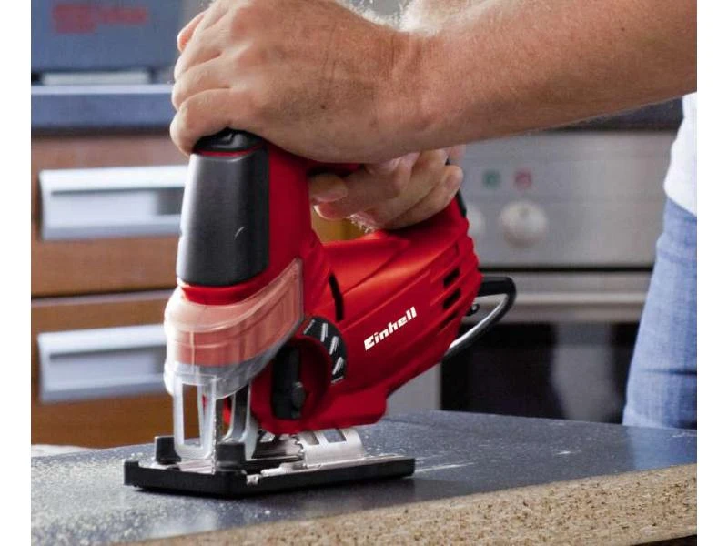 Die Einhell TH-JS 85 ist eine kraftvolle Stichsäge, mit der Sie Sägearbeiten an nahezu jedem Material durchführen können. Dabei ermöglichen der 4-fach verstellbare Pendelhub und die Hubzahl-Regelelektronik eine individuelle Materialbearbeitung. Der werkzeuglose Sägeblattwechsel hilft Ihnen, kostbare Zeit zu sparen.