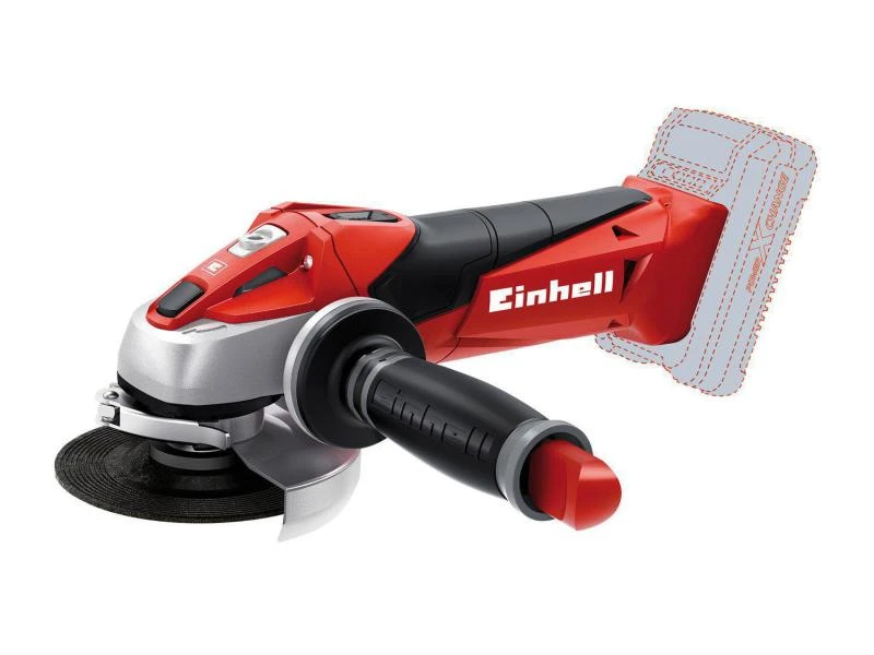 Der TE-AG 18 Li – Solo ist ein Winkelschleifer der Firma Einhell, welcher mit einem 18 V starken Li-Ion Akku arbeitet. Das Gerät zählt zu den leichtesten seiner Klasse, wodurch die Handhabung während des Betriebs deutlich vereinfacht wird. Zudem sorgen der ergonomische Softgrip und der Zusatzgriff, der sich je nach Bedarf in drei verschiedenen Positionen montieren lässt, für ein Plus an Komfort während des Arbeitens. Besonders praktisch ist dabei ebenso die hohe Laufruhe, welche durch die Entkopplung des Motors von dem Getriebe erreicht wird.