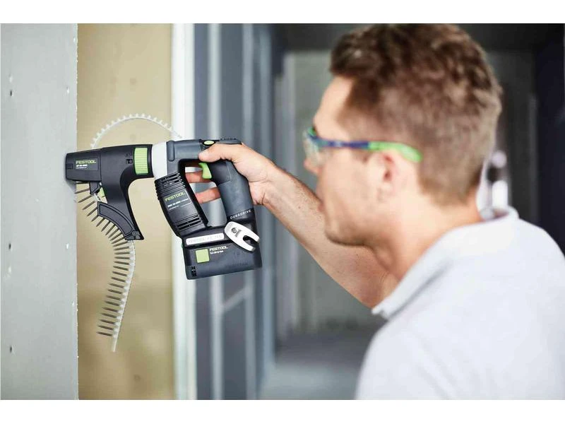 In jedem Detail spezialisiert auf den Trockenbau: Die kurze Bauform und der ausbalancierte Schwerpunkt sorgen für optimale Gewichtsverteilung – auch über Kopf. Der Magazinvorsatz für gegurtete Schrauben macht ihn zur ersten Wahl für schnelles und genaues Einhand-Schrauben – mit exakter Tiefe und enormer Taktzahl. Dank innovativer Stop-and-Go-Funktion arbeitet der bürstenlose EC-TEC Motor nur dann, wenn er gebraucht wird und ermöglicht bis zu 40% mehr Schraubleistung pro Akkuladung.