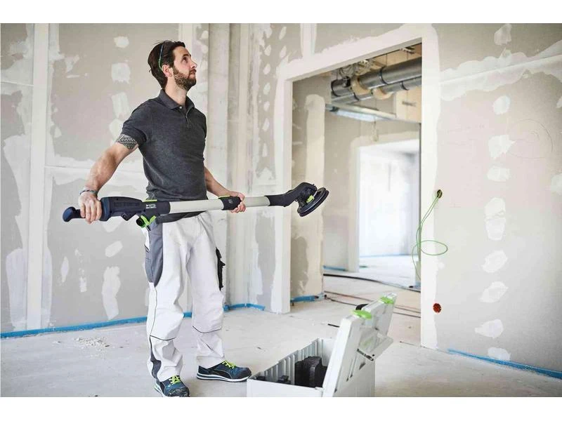 Die neue Generation Langhalsschleifer PLANEX revolutioniert den Trockenbau – mit LED-Licht und Exzenterbewegung. Der umlaufende LED-Lichtring arbeitet wie ein eingebautes Streiflicht und deckt Unebenheiten schon während des Schleifens auf. Die exzentrische Schleifbewegung erzielt dabei eine hervorragende Oberflächenqualität – ganz ohne teure Nacharbeit. Für ergonomisches Arbeiten an Wand und Decke sorgen die regulierbare Ansaugung, die variable Arbeitslänge und der clevere T-Griff – für eine leichte Führung auch bei langer Einsatzdauer.