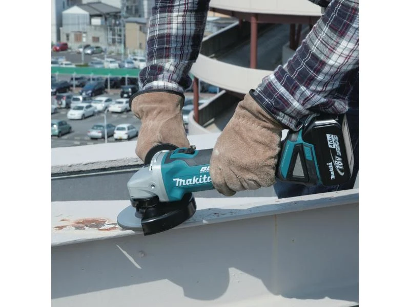 - Akku Winkelschleifer Ø 125 mm, 2x Akku Li-Ion 5.0 Ah, Ladegerät, Schrupp-Scheibe Ø 125 mm, Seitengriff, Nockenschlüssel, MAKPAC C Transportkoffer
