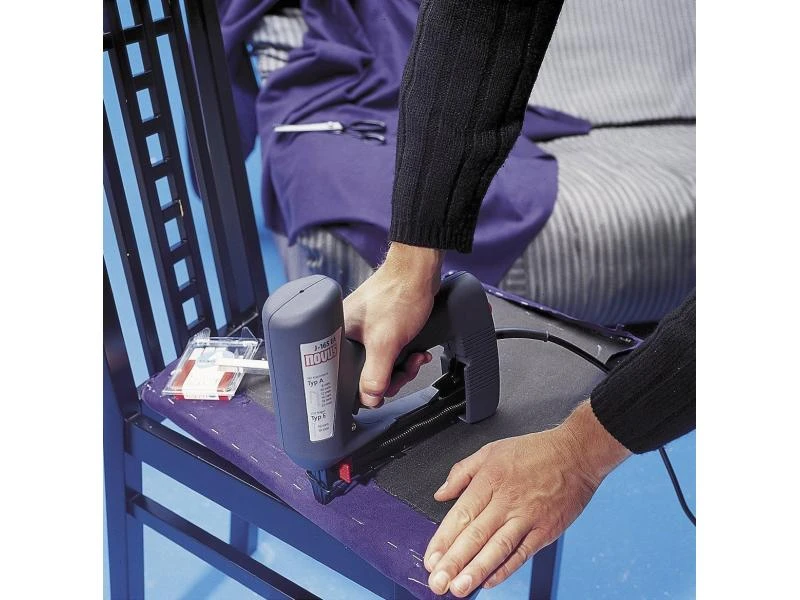 Der Elektrotacker J-165 extra power ist ein Universaltacker, der aufgrund seiner rückschlagsarmen Funktionen perfekt für professionelles Polstern, Isolieren und Vertäfeln mit Krallen ist. Klammersichtfenster, Schlagkrafteinstellung und Express-Störungsbeseitigung unterstützen während der Arbeiten optimal und machen das Gerät auch für schwer zugängliche Stellen geeignet.