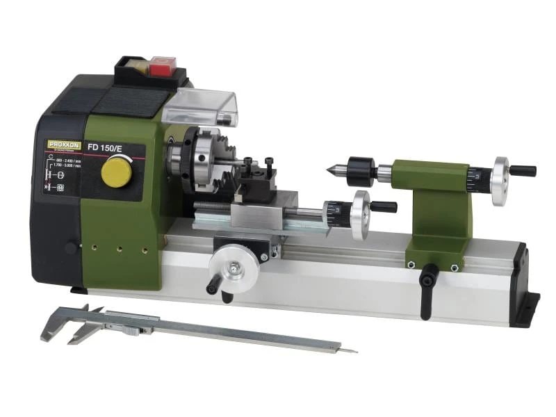 Die Proxxon Feindrehmaschine FD 150/E eignet sich hervorragend zum Plandrehen, Längsdrehen, Ausdrehen, Kegeldrehen, Abstechen und Bohren von verschiedensten Werkstücken. Das zweistufige Riemengetriebe ermöglicht Ihnen die stufenlose Drehzahlregulierung auf bis zu 5000 rpm. Zudem sorgt es für eine hohe Durchzugskraft im unteren Drehzahlbereich für grössere Werkstücke und für die richtige Schnittgeschwindigkeit auch bei kleinsten Teilen.