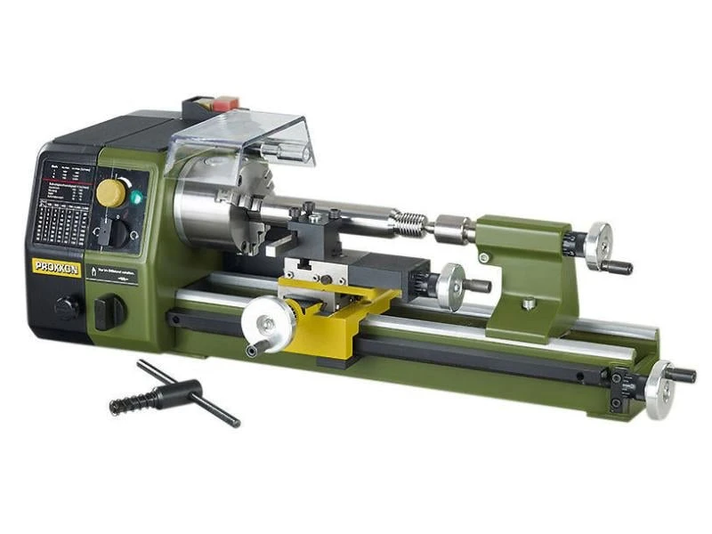 Mit der PD 250/E Präzisionsdrehmaschine von Proxxon können Sie verschiedenste Materialien, wie Stahl, Messing, Aluminium oder auch Kunststoffe präzise bearbeiten. Egal ob Plan-, Längs- und Kegeldrehen oder Gewindeschneiden: Die PD 250/E eignet sich mit ihrer Spitzenweite von 250 mm und der Spitzenhöhe von 70 mm für eine Vielzahl an Werkstücken. Das hochwertige Drehfutter sorgt mit einer Rundlauftoleranz von 0,04 mm für präzise Ergebnisse.