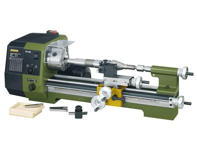 Die Drehmaschine PD 400 ist ein vielseitiger Alleskönner. Zum Schneiden von Aussen- und Innengewinden, Nuten, Längs- und Ausdrehen von Stahl, Alu, etc. Präzises Arbeiten ist durch Handräder, höhenverstellbare Stahlhalter und justierbaren Skalenring möglich. Schalter mit Not-Aus-Funktion, für Rechtslauf, Linkslauf und zum Entkuppeln der Leispindel.