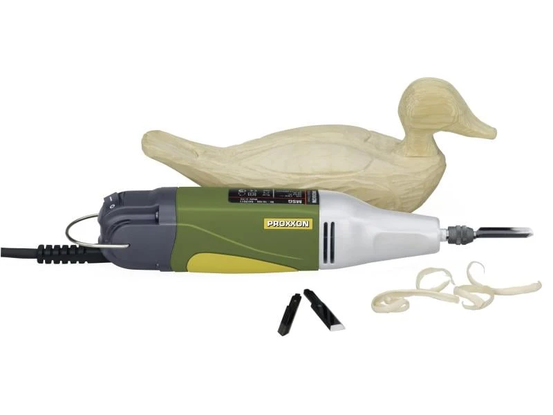 Das Motorschnitzgerät MSG mit einem Getriebekopf aus Alu-Druckguss eignet sich zum Renovieren, Bearbeiten von Möbeln, Aufarbeiten von Antiquitäten sowie für Linol-Schnitte und zum Farbentfernen. Auch Gips kann mit der Maschine bearbeitet werden. Lieferung enthält drei hochwertige, japanische Messereinsätze aus Bi-Metall. Gewicht 680 g, Länge 230 mm.