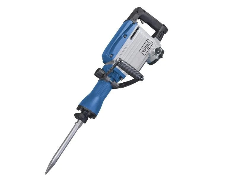Mit seinem 1600 Watt Elektromotor, 50 Joule Schlagkraft und 2000 Schlägen pro Minute ist der Scheppach AB1600 Abbruchhammer ein echtes Kraftpaket. Mühelos arbeitet er sich durch Mauern und Beton, unterstützend vorangetrieben durch seine 16 kg Eigengewicht. Dank Anti-Vibration und der beiden Handgriffe mit Soft-Grip, liegt das Gerät während der Arbeit sicher in der Hand. Der AB1600 wird inklusive Spitz- und Flachmeissel sowie Metallkoffer geliefert.